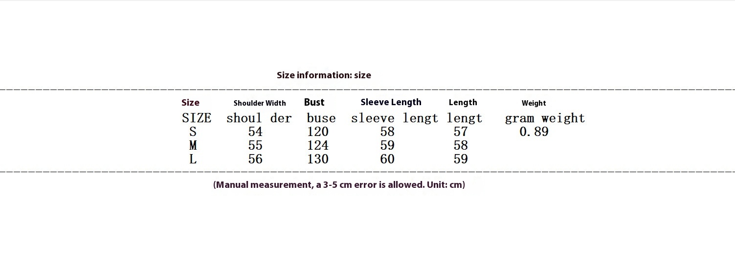 1. Asian sizes are 1 to 2 sizes smaller than European and American people. Choose the larger size if your size between two sizes. Please allow 2-3cm differences due to manual measurement. 2. Please check the size chart carefully before you buy the item, if you don't know how to choose size, please contact our customer service. 3.As you know, the different computers display colors differently, the color of the actual item may vary slightly from the following images.