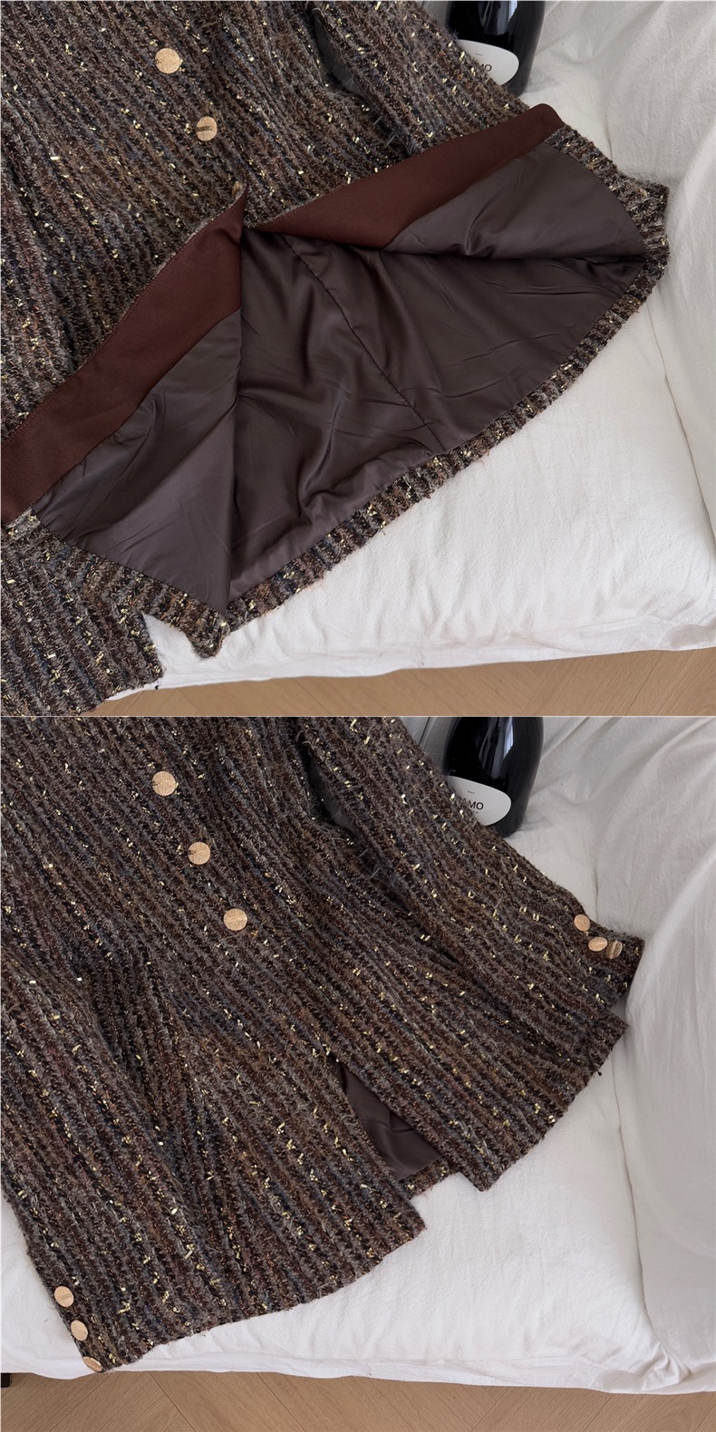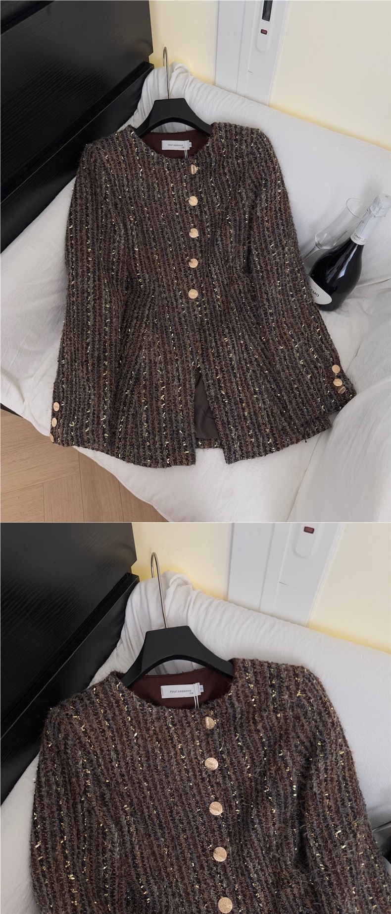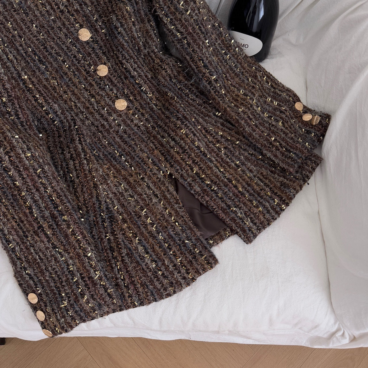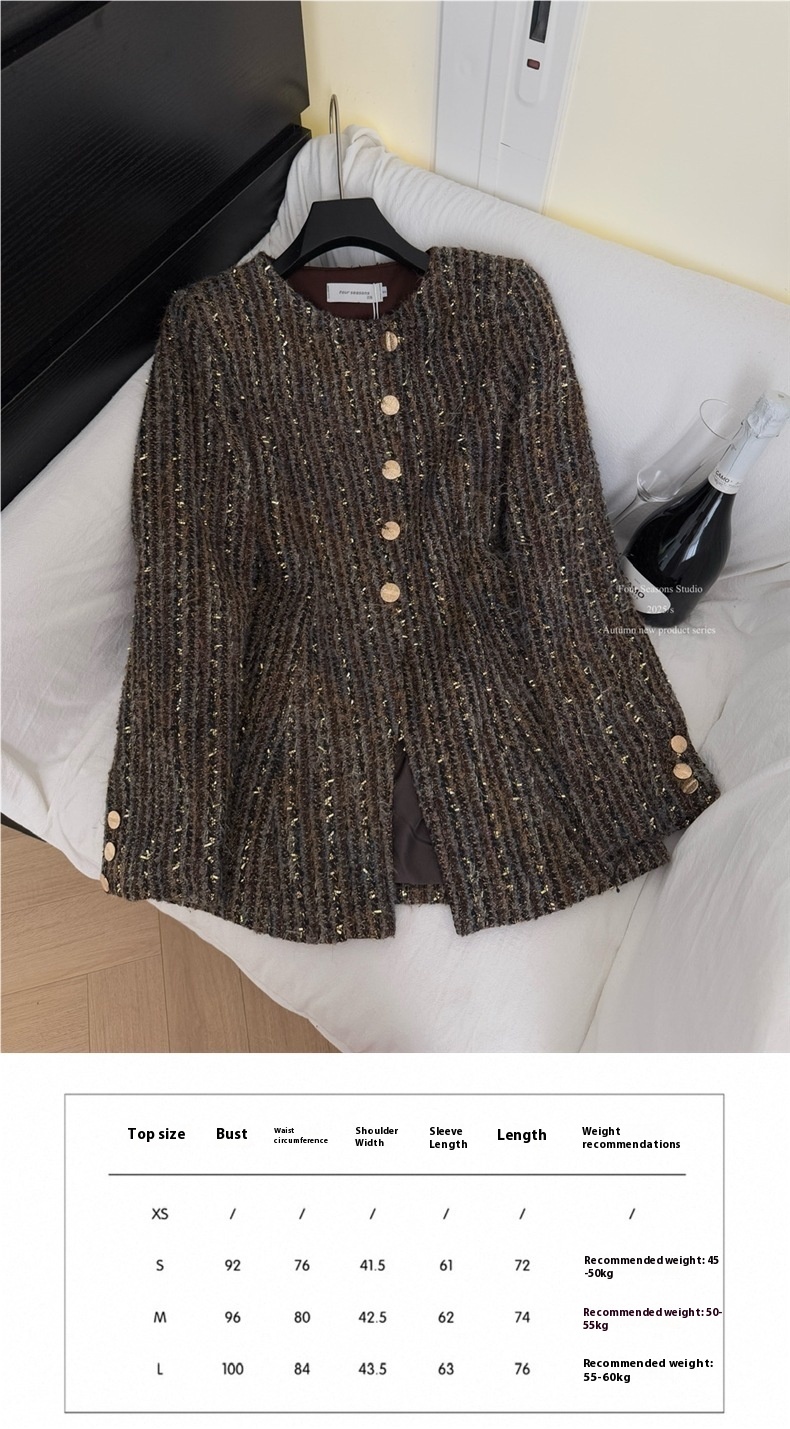Brown Old Money Style Coat Women's Tight Waist Slim Fit Gold Buckle Handsome Wool Coat