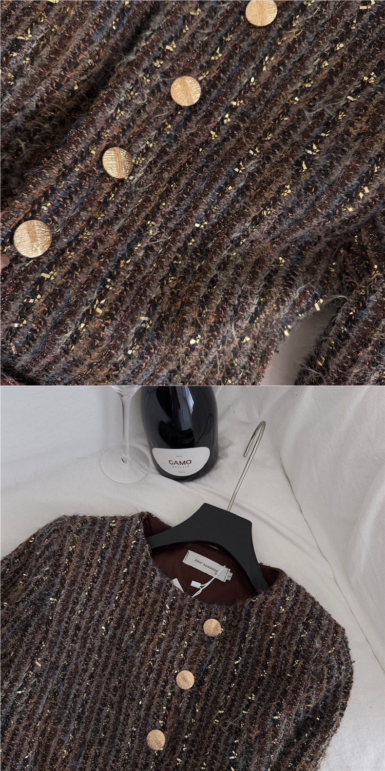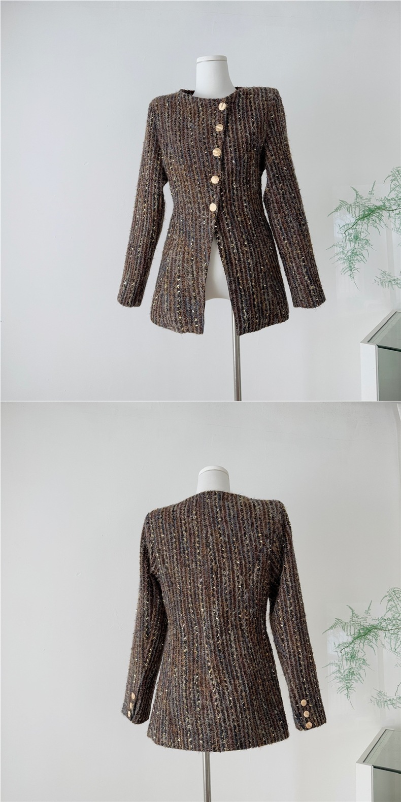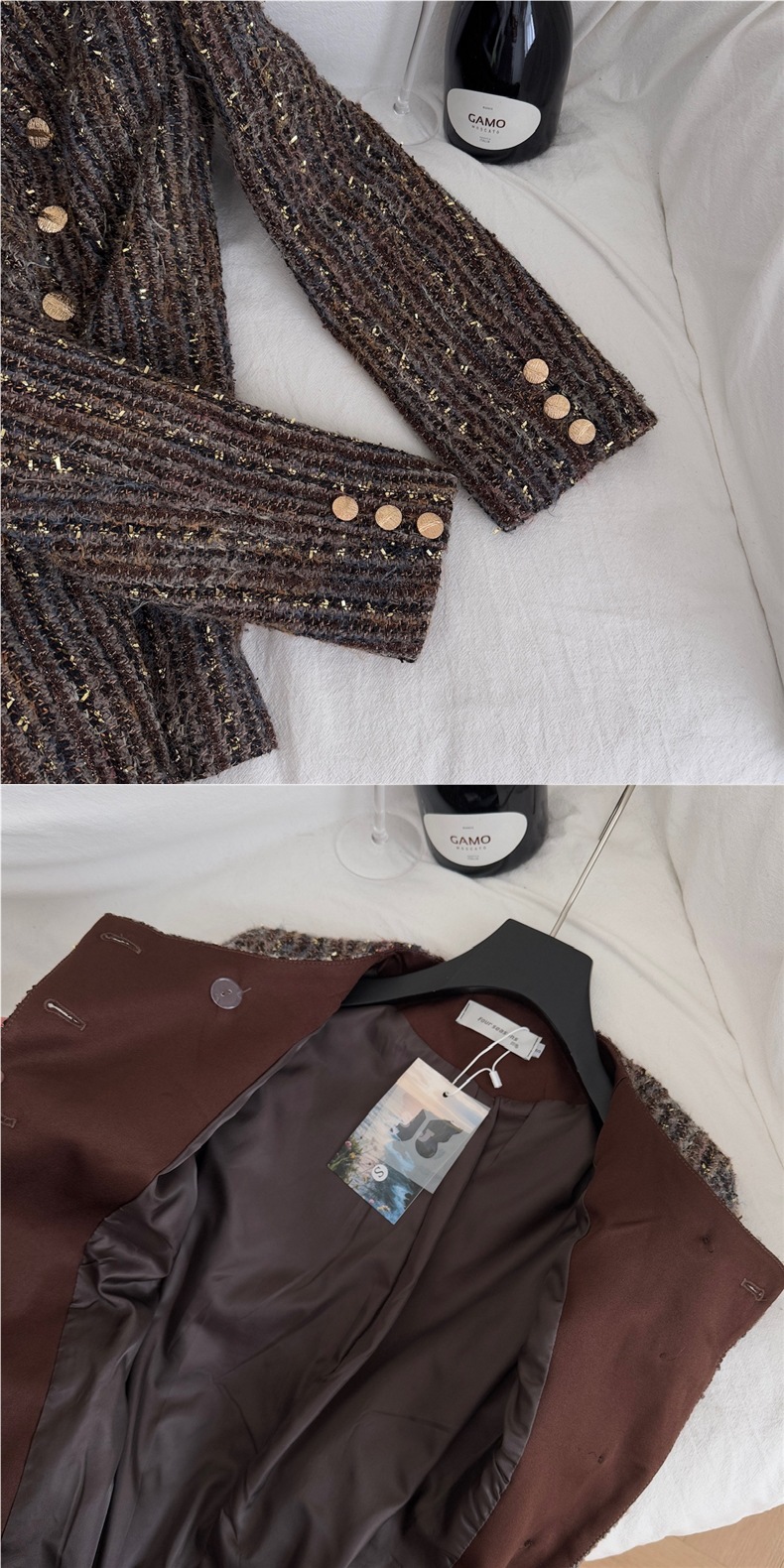 Brown Old Money Style Coat Women's Tight Waist Slim Fit Gold Buckle Handsome Wool Coat