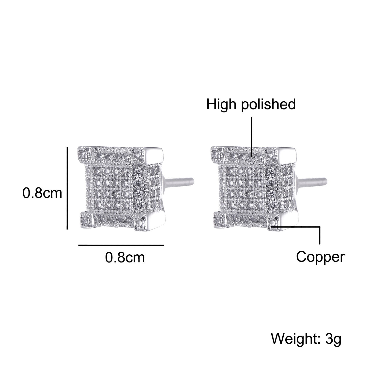 Hip-hop Earrings Copper Micro-inlaid Zircon Square Earrings