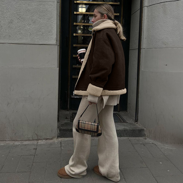Loose Suede Lambswool Warm Vintage Jacket