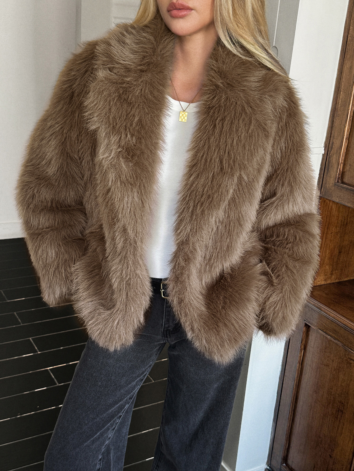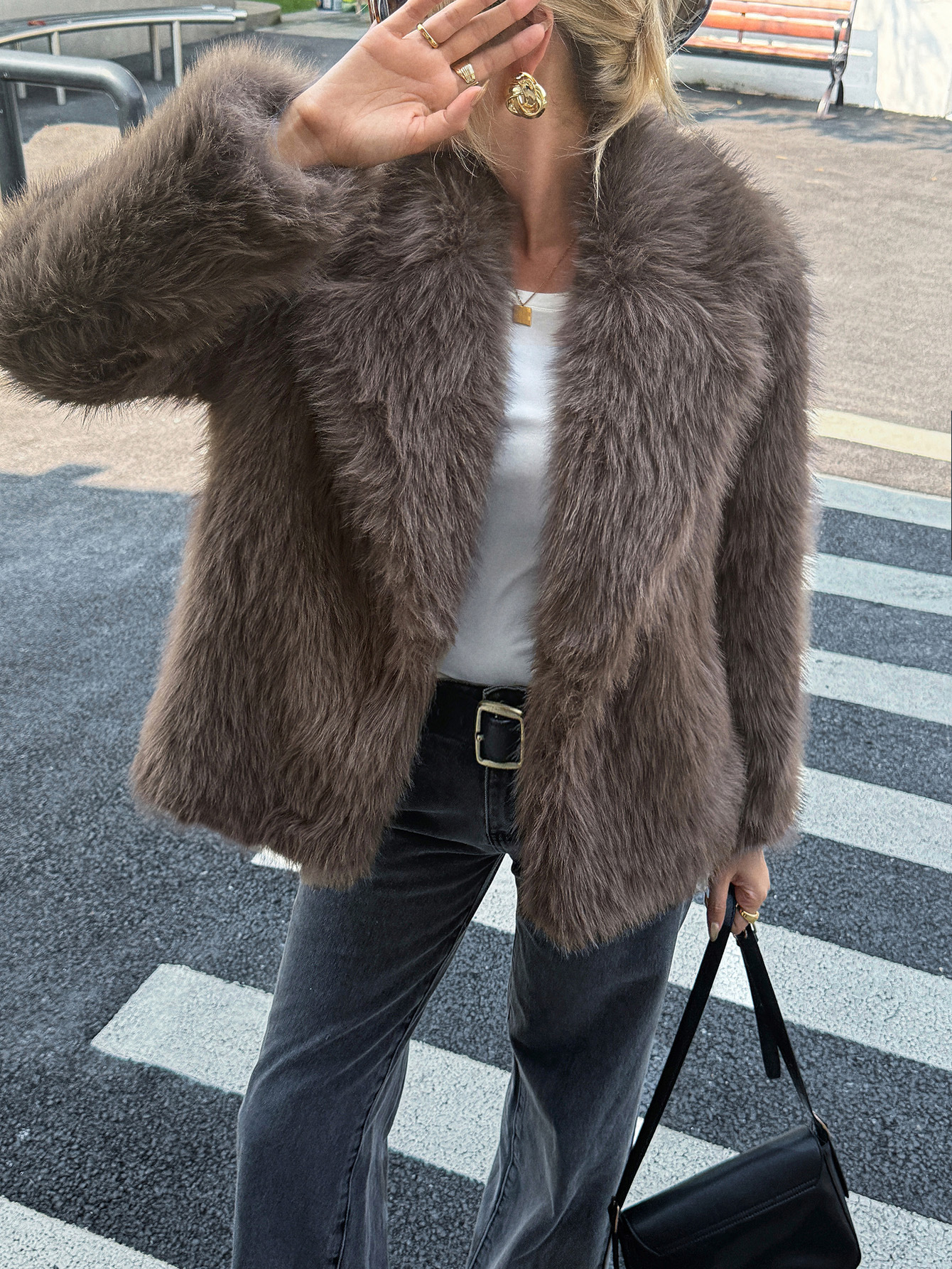 Solid Color Fluff Long Sleeve Coat Women's Clothing