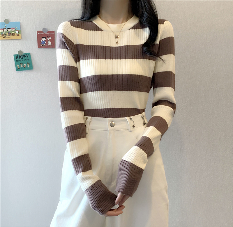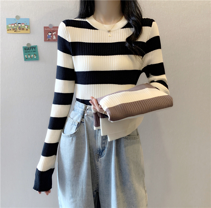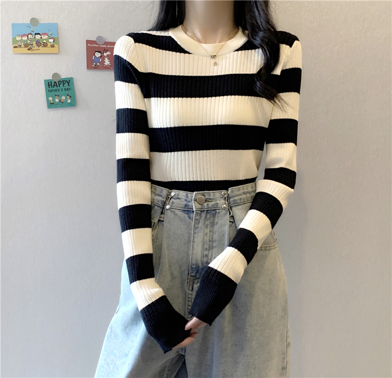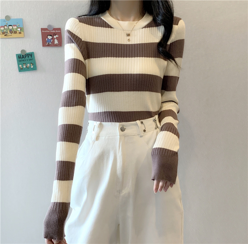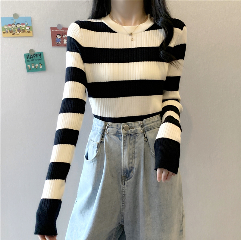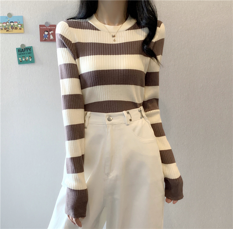 Striped Knitted Skinny Inner Match Women's Long Sleeve
