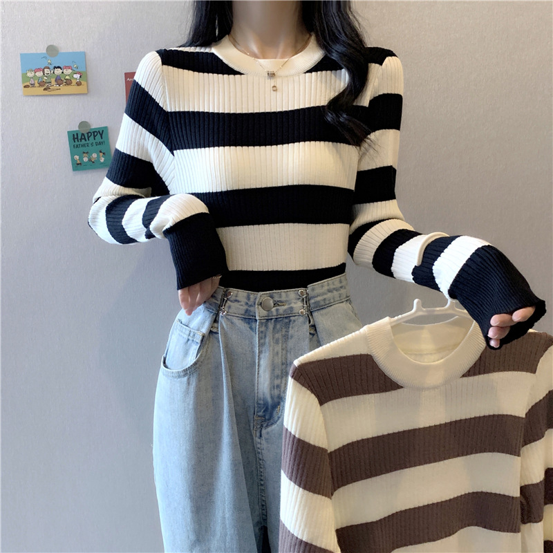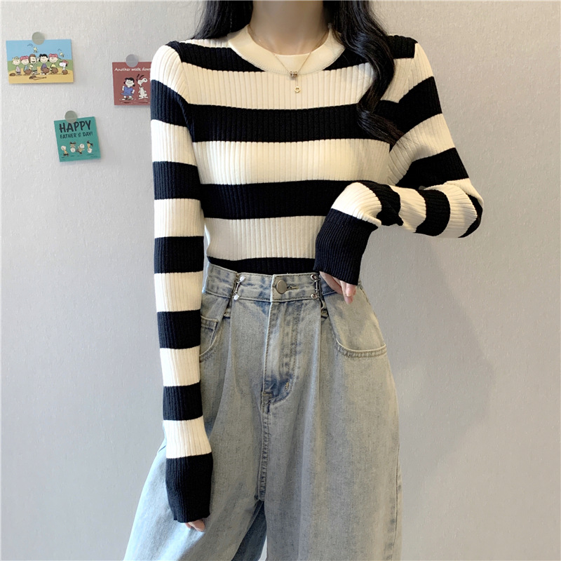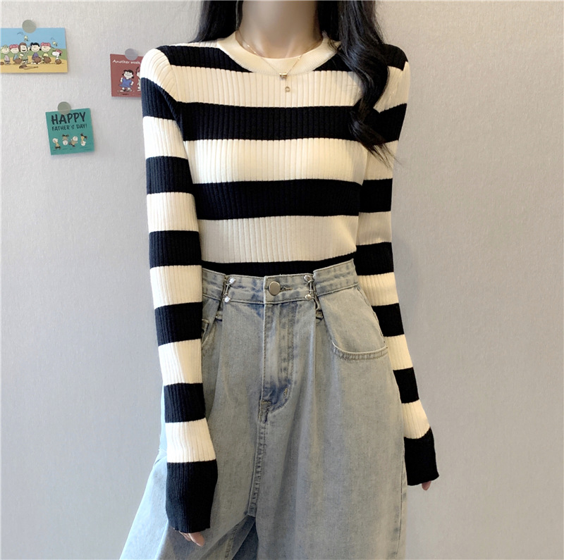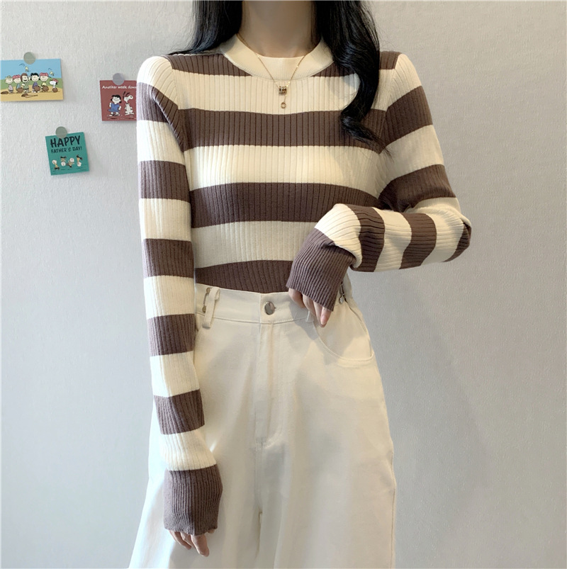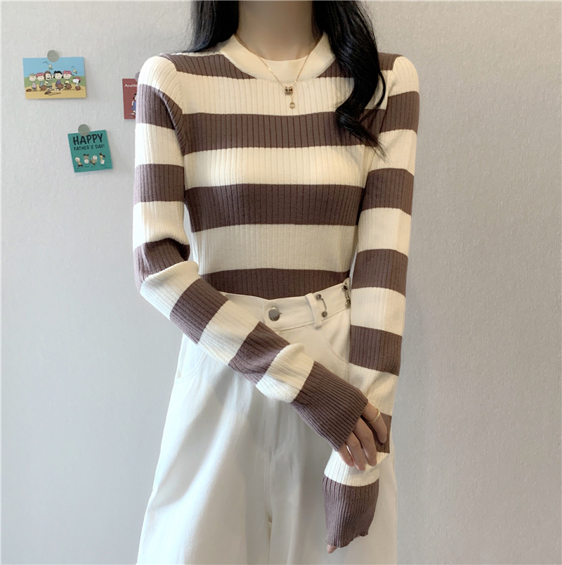 Striped Knitted Skinny Inner Match Women's Long Sleeve