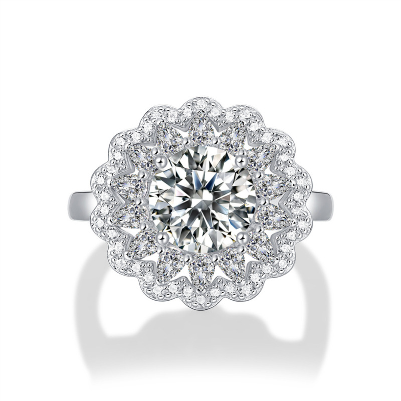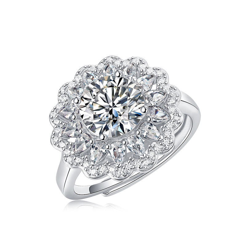 Women's Simple And Versatile S925 Silver Moissanite Ring Flowers